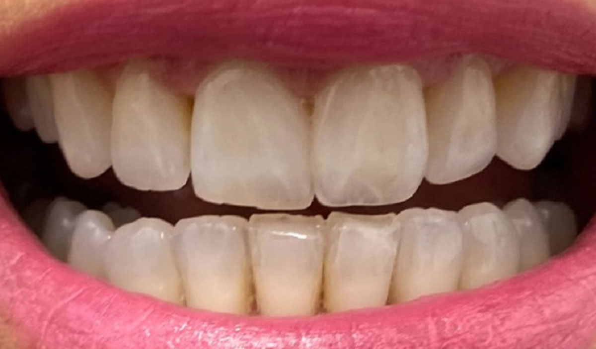 She was unhappy with the colour and the front teeth overlapping, she chose to have removable aligners with ClearCorrect, which worked a treat.